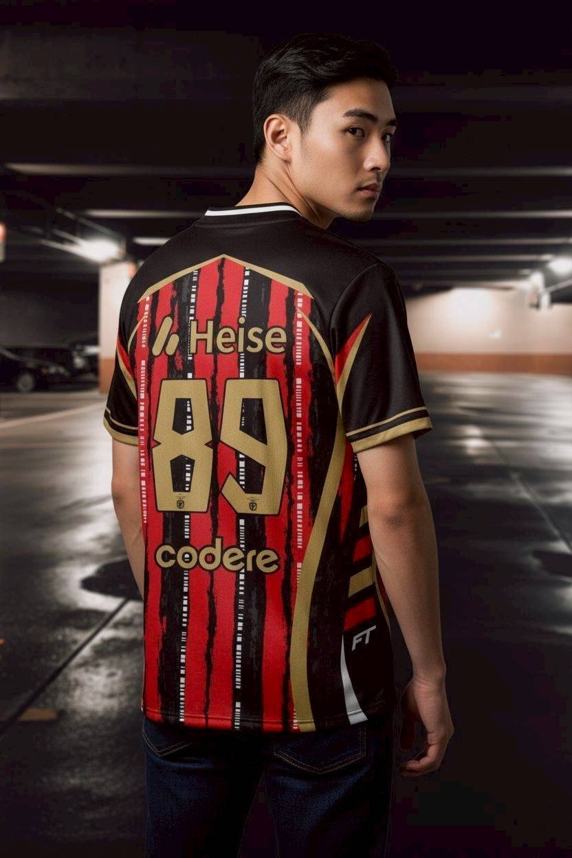 🏆 เสื้อกีฬา FTL1205 ลายทางแดงดำทอง สไตล์เผ่าพื้นเมือง