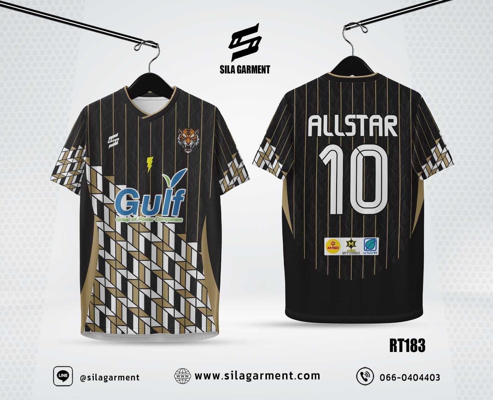 เสื้อกีฬา RT183 ดีไซน์เฉพาะ ผลิตจากผ้าโพลีเอสเตอร์คุณภาพสูง พิมพ์ลาย Sublimation สีสดไม่ลอก รับออกแบบและผลิตตามต้องการ ไม่มีขั้นต่ำ