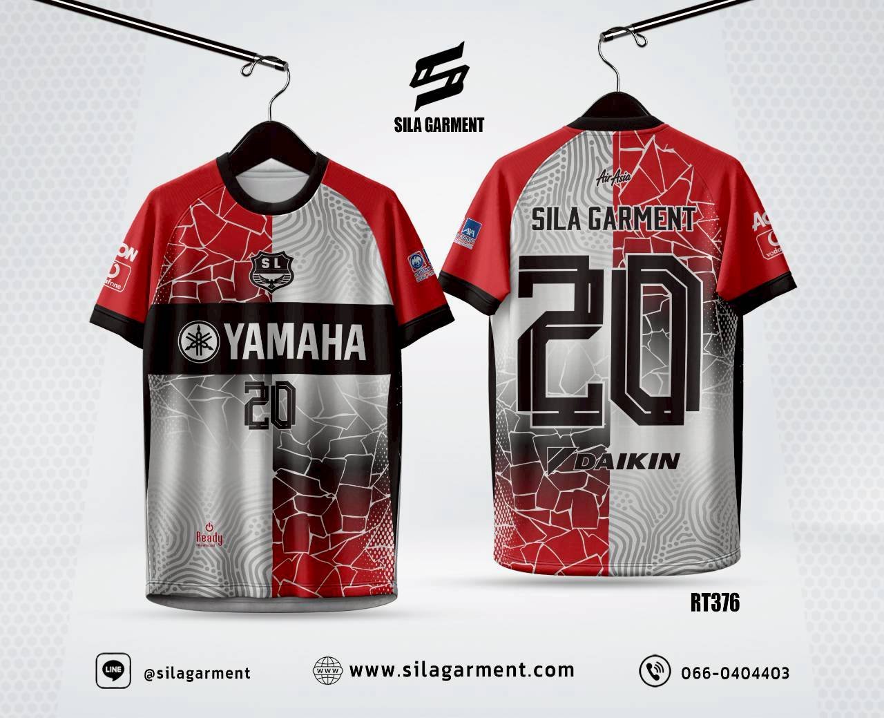 เสื้อกีฬา RT376 YAMAHA ลายเรขาคณิต สีแดงขาวดำ ดีไซน์โมเดิร์น