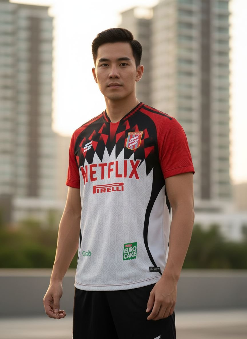 เสื้อกีฬา RT712 ลายกราฟิก ออกแบบมาเพื่อนักกีฬาและทีมที่ต้องการความโดดเด่น ผลิตจากผ้าโพลีเอสเตอร์คุณภาพสูง ระบายอากาศได้ดี สวมใส่สบายตลอดการแข่งขัน