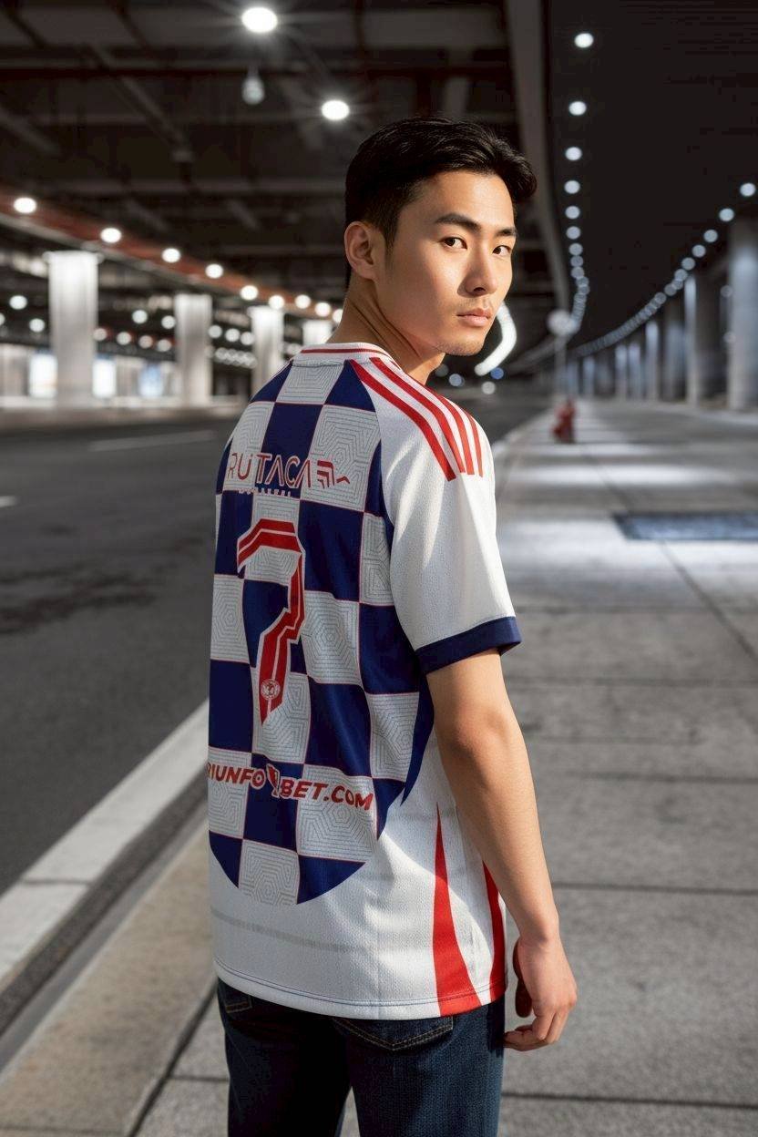 เสื้อฟุตบอล FTL1019 ลายหมากรุกโครเอเชีย สีน้ำเงินขาว