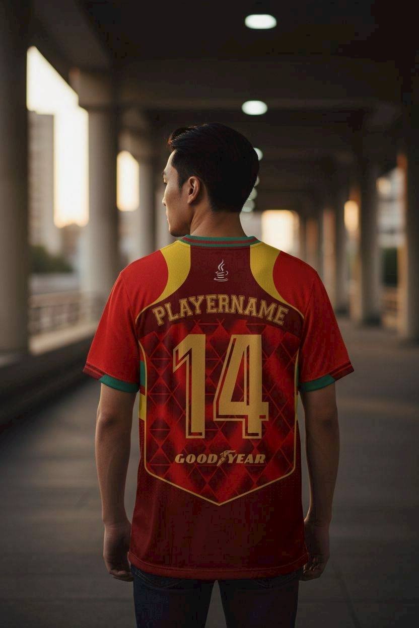 เสื้อฟุตบอล RT380 Emirates ลายเพชรแดงเหลืองสไตล์คลาสสิค ผ้าโพลีเอสเตอร์ระบายอากาศดี พิมพ์ Sublimation คมชัดทนทาน ใส่สบาย เหมาะกับทุกโอกาส