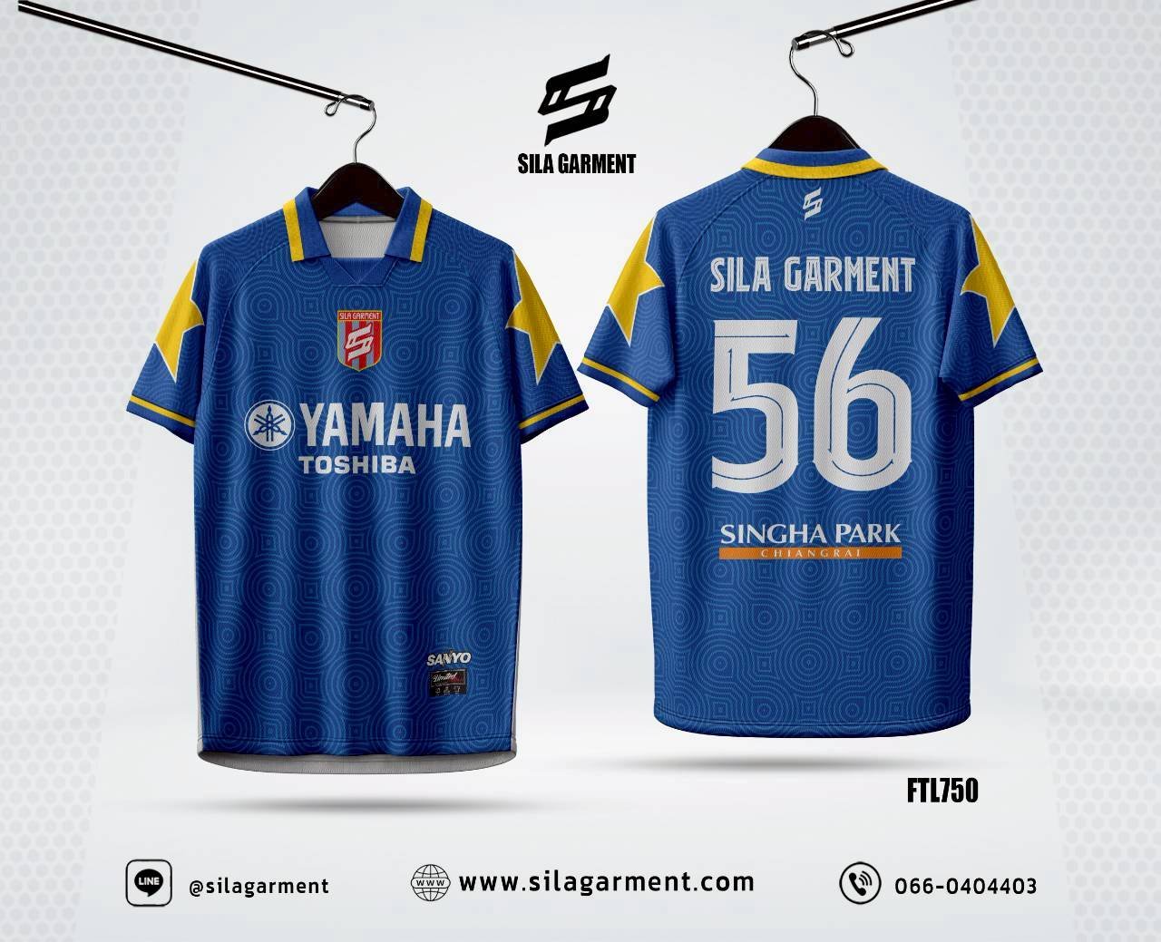 เสื้อฟุตบอล RT705 YAMAHA TOSHIBA สีน้ำเงินเหลือง ลายวงกลมวินเทจ