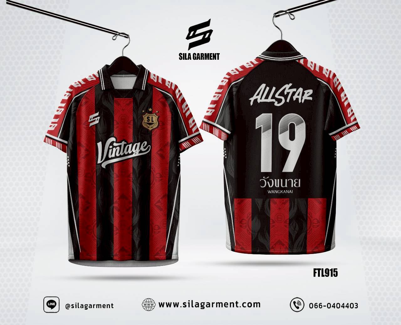 เสื้อฟุตบอล RT915 ลายทางแดงดำ Vintage Allstar น้ำมงคลไทย สไตล์คลาสสิค